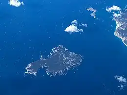 Shikine-jima (式根島) is a volcanic Japanese island in the Philippine Sea.[1] The island is administered by Tōkyō and located approximately 160 kilometres (99 mi) south of Tōkyō and 36 kilometres (22 mi) south of Shimoda Shizuoka Prefecture. It is one of the Izu Seven Islands group of the seven northern islands of the Izu archipelago. The island is the smaller inhabited component of the village of Niijima, which also contains the larger, neighboring island of Niijima and the smaller, uninhabited Jinai-tō. It is part of the Ōshima Subprefecture of Tokyo Metropolis. As of 2009, the island's population was 600. Shikinejima is also within the boundaries of the Fuji-Hakone-Izu National Park.