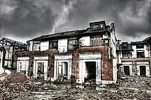 Another notable now-demolished development was Siwen Li, located on Xinzha Road. This late period old type shikumen development occupied 4.66 hectares, with 48,000 square metres of floor space. There were a total of 706 residences of two or three storeys.[9] Most of these buildings were one-bay wide, without modern sanitary equipment. The house gates were noted for intricate baroque style lintels.[15] Originally a middle-class neighbourhood, the area became dense slums due to the influx of refugees in the Second Sino-Japanese War.[9] The entire neighbourhood was razed progressively in 2012–2014.