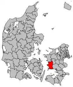 Slagelse Municipality (Danish: Slagelse Kommune) is a kommune in Region Zealand on the west coast of the island of Zealand in Denmark. The municipality covers an area of 571 km². The municipality borders Kalundborg Municipality to the north, Sorø Municipality to the north-east, Næstved Municipality to the south-east and connects to Nyborg Municipality via the Great Belt Bridge.