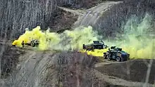 Many armoured fighting vehicles can create smoke screens in a similar way, generally by injecting diesel fuel onto the hot exhaust.