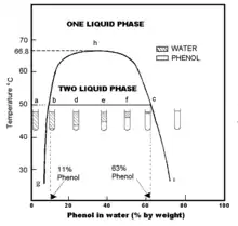 Phenol is an organic compound appreciably soluble in water, with about 84.2 g dissolving in 1000 mL (0.895 M). Homogeneous mixtures of phenol and water at phenol to water mass ratios of ~2.6 and higher are possible. The sodium salt of phenol, sodium phenoxide, is far more water-soluble. It is a combustible solid (NFPA rating = 2). When heated, phenol produces flammable vapors that are explosive at concentrations of 3 to 10% in air. Carbon dioxide or dry chemical extinguishers should be used to fight phenol fires.[5]