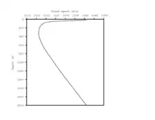 - a plot of the speed of sound in the ocean as a function of depth, where the vertical axis corresponds to the depth and the horizontal axis corresponds to the sound speed. By convention, the horizontal axis is placed at the top of the plot, and the vertical axis is labeled with values that increase from top to bottom, thus reproducing visually the ocean from its surface downward.