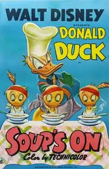 Soup's On is a 1948 Donald Duck animated short film directed by Jack Hannah, produced in Technicolor by Walt Disney Productions and released to theaters by RKO Radio Pictures.[1]