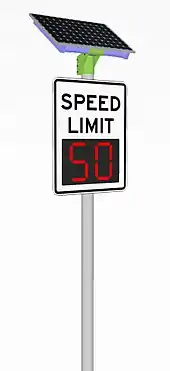 Speed limits on road traffic, as used in most countries, set the legal maximum speed at which vehicles may travel on a given stretch of road.[1] Speed limits are generally indicated on a traffic sign reflecting the maximum permitted speed, expressed as kilometres per hour (km/h) or miles per hour (mph) or both. Speed limits are commonly set by the legislative bodies of national or provincial governments and enforced by national or regional police and judicial authorities. Speed limits may also be variable, or in some places nonexistent, such as on most of the Autobahnen in Germany.[2]