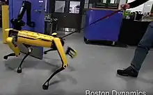 In a 2018 viral promotional video, a rear part of Spot's casing falls off as it compensates to overcome interference.