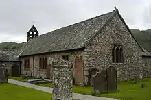In the churchyard is a gravestone commemorating Thomas Dobson (died 1910), who was master of the Eskdale and Ennerdale Foxhounds for 53 years. Known as the "Huntsman's Grave", the stone is carved with Dobson's huntsman's horn and two projecting heads, one of a fox and one of a hunting dog.[7][8]