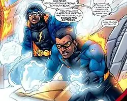 In 2009 storyline it was recently revealed that prior to his abduction, Static teamed with Justice League member Black Lightning to stop former Blood Syndicate member Holocaust, who had tried to kill the superhero while he was acting as the keynote speaker at Ernest Hemingway High's senior graduation.[23]