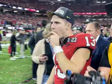 ![]() Bennett at the post-game press conference after the 2023 CFP title game | |