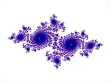 A more subtle form of scale symmetry is demonstrated by fractals. As conceived by Benoît Mandelbrot, fractals are a mathematical concept in which the structure of a complex form looks similar at any degree of magnification,[34] well seen in the Mandelbrot set. A coast is an example of a naturally occurring fractal, since it retains similar-appearing complexity at every level from the view of a satellite to a microscopic examination of how the water laps up against individual grains of sand. The branching of trees, which enables small twigs to stand in for full trees in dioramas, is another example.