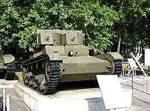 ![]() T-26 mod. 1933 at the "Breaching of the Leningrad Blockade" museum near Kirovsk, Leningrad Oblast. This tank was raised from the river bottom at Nevsky Pyatachok in May 2003. | |