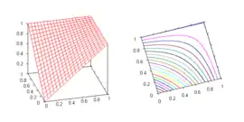 | Minimum t-norm | Standard Gödel implication | y | ![]() Standard Gödel implication. The function is discontinuous at the line y = x < 1. |