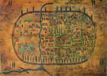 The early history of Tabriz is not well documented. The earliest civilization signs in the city belongs to an Iron Age grave yard of 1st millennium B.C. which were unearthed in late 1990s in northern side of Blue Mosque.[27] The city also inscribed as old as 714 B.C. on as Tarui or Tauris, on the Assyrian King Sargon II's epigraph in 714 BC.[28]