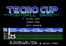 Tecmo Cup Football Game is a cancelled 1993 association football sports video game. While the game was about to be published by Sega with license from Tecmo for the Sega Mega Drive, it was cancelled due to the release department of Sega Europe's policy regarding third party games (along with many other games, most of them that already had a Japanese release, like Splatterhouse 3 or Golden Axe III).[1] The game would have enjoyed a Europe-exclusive release because the game was heavily promoted on many magazines and promo videos at the time. 'SuperJuegos' magazine from Spain even had a VHS promotion video including footage of the game and promoting its further release. There is a ROM of this game available on the Internet despite not having been released in cartridge form.