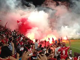 Between them, the clubs had together won 36 championships and 40 national cups. Both clubs have played in the top division of Israeli football both before and since independence in 1948, with the exception of the 1989–90 season, when Hapoel played in the second tier following relegation the previous season and with the exception of the 2017–18 season, when Hapoel played in the second tier following relegation the previous season. The first league encounter between the teams was played on 19 December 1931, and the points were shared with a result of 1–1.[8] Prior to independence, the clubs have met 17 times in the league, out of which Hapoel won 9, Maccabi won 5 and 3 resulted in a draw.[9] Post 1948, Maccabi holds the lead with 61 league victories, opposite 46 Hapoel wins and 59 draws. Overall, since 1931, Hapoel has 55 league victories, Maccabi has 66 and 62 matches ended with a draw.