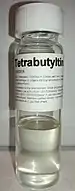 Tetrabutyltin is the organotin compound with the molecular formula Sn(CH2CH2CH2CH3)4 or SnBu4, where Bu is butyl −CH2CH2CH2CH3. Sometimes abbreviated TTBT, it is a colorless, lipophilic oil.[3]