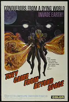 They Came from Beyond Space is a 1967 British Eastman Color science fiction film produced by Max J. Rosenberg and Milton Subotsky, and directed by Freddie Francis. The screenplay was written by Subotsky, based on the 1941 novel The Gods Hate Kansas by Joseph Millard. The film stars Robert Hutton, Jennifer Jayne, Zia Mohyeddin and Bernard Kay.