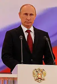 Vladimir Putin delivered his speech as President of Russia:[5]