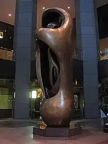 Three First National Plaza's nine-story atrium used to contain "Large Internal-External Upright Form", a sculpture by Henry Moore. The sculpture was removed and sold in 2016 following a remodel of the lobby. The building features pedway access, and was once connected to Chase Tower by a second-story skywalk.