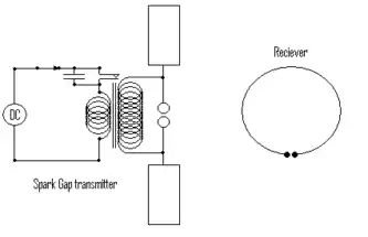 A spark-gap transmitter for generating radio frequency electromagnetic waves. Such devices served as the transmitters for most early wireless systems.
