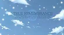 True Remembrance is a free visual novel by Shiba Satomi for Microsoft Windows. The game tells of a future where many people suffer from a pandemic depression known as The Dolor. In an unnamed city, specialized doctors known as Mnemonicides treat patients who suffer from The Dolor. The game's protagonist, a young Mnemonicide named Blackiris, is given the task of curing a young girl named La of The Dolor. The game was translated to English and released in February 2008 by Insani. A remake titled True Remembrance ~Kioku no Kakera~ (TRUE REMEMBRANCE ~記憶のかけら~) was released on Nintendo 3DS's eShop on February 22, 2012.