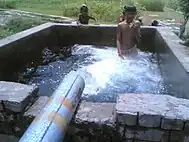 A small reservoir of water is made at the outlet of the tube well. This reservoir is used for different usage of water by the local population.