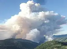 Fed by wind gusts of up to 35 miles per hour (56 km/h) and extremely dry conditions, 25 small fires caused by lightning strikes grew and spread quickly, combining to form larger fires. Firefighters had difficulty fighting them due to the remote location and the rugged terrain, such as basalt cliffs.[3] The fires primarily burned trees ranging from 10 to 45 years old.[4][5]