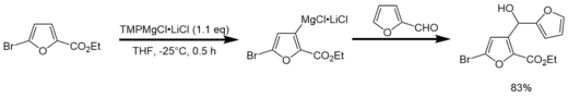 - Krasovskiy, A.; Krasovskaya, V.; Knochel, P. (2006). "Mixed Mg/Li Amides of the Type R2NMgCl⋅LiCl as Highly Efficient Bases for the Regioselective Generation of Functionalized Aryl and Heteroaryl Magnesium Compound". Angew. Chem. Int. Ed. 45 (18): 2958–2961. doi:10.1002/anie.200504024. PMID 16568481.