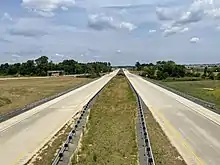 In 2016, construction began on the US 301 toll road.[38] A groundbreaking ceremony was held on February 5, 2016, near the Maryland state line, with Governor Jack Markell, FHWA administrator Gregory G. Nadeau, and DelDOT secretary Jennifer Cohan in attendance.[39] The expected cost of the project was $600 million, and DelDOT sought a federal loan to pay for a third of the costs, which was approved in August 2015.[40][37] The toll road, which cost $636 million to build, was originally planned to open to traffic on January 1, 2019, but inclement weather delayed the opening date.[41] The US 301 toll road opened to traffic on January 10, 2019.[42] With the opening of the US 301 toll road, restrictions on non-local truck traffic were put into place on the former alignment of US 301.[43] On March 1, 2019, a ribbon-cutting ceremony marking the completion of the project was held, with Governor John Carney, Lieutenant Governor Bethany Hall-Long, DelDOT secretary Cohan, U.S. Senators Tom Carper and Chris Coons, and Middletown Mayor Ken Branner in attendance.[44]