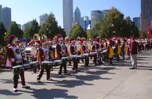 In 2003, the TMB performed during the Chinese New Year celebration in Hong Kong, a year later it also played at the Great Wall of China, Xi'an, Shanghai as well as returning to Hong Kong for the Chinese New Year. The TMB participated in Expo 2005 in Nagoya, Japan, while also performing in Tokyo and Kyoto. In 2006 the TMB went to Italy and performed in Venice, Florence and in front of the Colosseum of Rome.[3] In 2010, the band traveled to Shanghai, China, once again to play for United States National Day at the 2010 World Expo and in 2014 for the grand opening of the first Old Navy flagship store in China.[7] In 2016 the band became the first American performing group invited to participate in Macau's Chinese new year parade.[8]