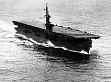 USS Petrof Bay (CVE-80) was the twenty-sixth of fifty Casablanca-class escort carriers built for the United States Navy during World War II. She was named after Petrof Bay, which in turn was named in 1928 after Ivan Petroff, a Russian Alaskan who served as a special census agent for the 1880 United States census. The bay is located within Kuiu Island, which at the time was a part of the Territory of Alaska.[3] The ship was launched in January 1944, commissioned in February, and served in support of the Mariana and Palau Islands campaign, the Philippines campaign, including the Battle off Samar, the Battle of Iwo Jima, and the Battle of Okinawa. She was decommissioned in July 1946, when she was mothballed in the Atlantic Reserve Fleet. Postwar, she participated in Operation Magic Carpet. Ultimately, she was broken up in September 1959.