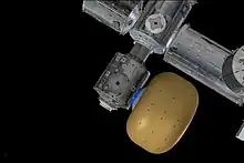 The Pressurized Mating Adapters (PMA) serve as docking ports on the USOS portion of the ISS. It converts the standard Common Berthing Mechanism to APAS-95, the docking system that was used by the Space Shuttle and the Russian Orbital Segment. Currently PMA-1 is used to connect the Unity node with the Zarya module on the ISS. Pressurized Mating Adapter-2 is located on the forward end of Harmony, while PMA-3 is located in the zenith port of the same node.[16] PMA-2 was the main Shuttle docking port, with PMA-3 being its backup, used only a few times. With the new Crew Commercial Program and the retirement of the Shuttle fleet, NASA built the International Docking Adapter, to convert PMA-2 and PMA-3 to the NASA Docking System. IDA-1 was supposed to dock with PMA-2, but was lost in the SpaceX CRS-7 launch failure. Thus IDA-2, which was brought by SpaceX CRS-9 and was supposed to dock to PMA-3, was shifted to PMA-2. IDA-3, the replacement for the lost IDA-1, was launched in July 2019 on SpaceX CRS-18 and was berthed to PMA-3. PMA-1 and PMA-2 were delivered with the Unity node on STS-88 in December 1998.[2] The third PMA was delivered by STS-92 on October 11, 2000.[17]