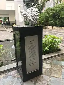 This sculpture was donated by Yeo Chee Keong and Anthony Teo to UniSIM. Mounted on a soft hue of volga blue Ukrainian igneous granite pedestal, Wings aspire UniSIM graduates to soar.