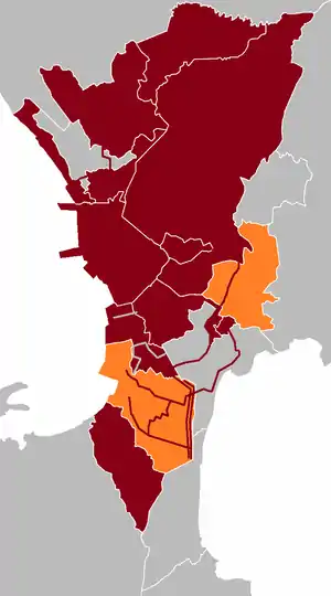 - Taguig: UVVRP not implemented, however it is enforced on the national roads within its boundaries, i.e. C-5 Road, East Service Road, and Manuel L. Quezon Street.