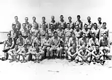Marine Fighter Squadron 223 (VMF-223) was commissioned on May 1, 1942 at Marine Corps Air Station Ewa, Oahu, Hawaii.[1] The "Bulldogs" first operational aircraft was the Brewster F2A Buffalo. They left Hawaii for combat equipped with the Grumman F4F Wildcat. VMA-223 became the first fighter squadron committed to combat during the Battle of Guadalcanal when they landed at Henderson Field on August 20, 1942.[2] Upon arriving, the squadron became part of the Cactus Air Force and for the next two months slugged it out with Japanese pilots, based out of Rabaul, for control of the skies over Guadalcanal. VMF-223 departed the island on October 13, 1942 having accounted for 83 enemy aircraft shot down including that of Japanese ace Junichi Sasai.[3] The two leading aces in the squadron were the commanding officer, Major John L. Smith, with nineteen confirmed shoot downs and Marion E. Carl who was credited with sixteen.[4] Smith was to be awarded the Medal of Honor for heroism and Captain Carl would win the first of his two Navy Crosses for these actions.[3] These victories would come at the cost of six pilots killed and six wounded, and only eight Wildcats still operational.[5]