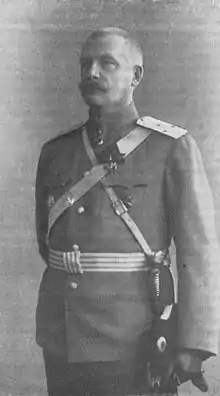 Vasily Yegorovich Flug (March 19, 1860 – December 3, 1955) was an Imperial Russian Army General of the Infantry. A career military officer, he served in the Boxer Rebellion, Russo-Japanese War, and World War I, before joining the White movement during the Russian Civil War. Like many other officers, he went into exile after the end of the Russian Civil War, initially moving to Yugoslavia. After World War II, Flug went to the United States, where he died.