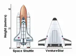 VentureStar was a single-stage-to-orbit reusable launch system proposed by Lockheed Martin and funded by the U.S. government. The goal was to replace the Space Shuttle by developing a re-usable spaceplane that could launch satellites into orbit at a fraction of the cost. While the requirement was for an uncrewed launcher, it was expected to carry passengers as cargo. The VentureStar would have had a wingspan of 68 feet (20.7 m), a length of 127 feet (38.7 m), and would have weighed roughly 1000 t (2.2 million lb).
