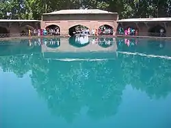 Verinag (/ˈveɪriːnɑːɡ/) is a town named after and famous for the Verinag spring and Mughal garden, near Anantnag city in the Anantnag district of the union territory of Jammu and Kashmir, India. It is a notified area committee with tehsil status (Shahabad Bala Verinag) and is about 26 kilometers away from Anantnag and approximately 78 kilometres south-east from Srinagar which is the summer capital of the union territory of Jammu and Kashmir. Verinag is also the first tourist spot of Kashmir Valley when travelling by road from Jammu, the winter capital of the union territory of Jammu and Kashmir towards Srinagar. There is an octagonal stone basin at Verinag Spring and an arcade surrounding it which were built by Mughal emperor Jahangir in 1620 A.D. Later, a beautiful garden next to this spring, was laid out by his son Shah Jahan. This spring is known to never dry up or overflow. Verinag Spring is also the major source of river Jhelum. Verinag Spring and Mughal Arcade surrounding it is officially recognized by Archaeological Survey of India as a Monument of National Importance.[4]