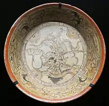 Painted ceramic plate from Calakmul, 600 to 800 AD.