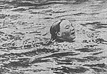 In 1906, Vivian Marshall first gained local attention for swimming from the docks at Captain Bundy's Bath House in Oregon City to the west side of the Willamette River and back without resting. The trip took 30 minutes, which The Oregonian noted was the quickest recorded time by a female swimmer. Marshall was accompanied by W. L. Murray and her father R. A. Marshall in a lifesaving boat during the swim.[4] In 1908, Marshall embarked on a six-month trip around the United States.[5] She was sent to music school in New York in 1910 for a six-month period which was capped by her singing at the Waldorf Astoria Hotel.[6] Marshall spent over a year in Europe—from 1910 to 1911—where she studied music at stops in Berlin, London and Paris.[7][8][9] In 1912, while in Gearhart, Oregon, Marshall first performed the "fire dive"; in which she would soak her baiting suit in wood alcohol, light it and high dive into the water to extinguish the flames.[8][10] She took first place during the 25 yard swim and the springboard during the Oregon State Swimming and Diving Championships in April 1912.[11] That year, Marshall was hired by the Multnomah Athletic Club to instruct the female diving and swimming pupils and performed her fire dive for the Pacific Northwest Indoor Diving Championships in November.[12][13]