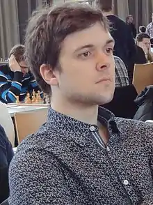 In March 2017 Fedoseev came first in the Aeroflot Open.[23] This victory earned him an invitation to the Dortmund Sparkassen Chess Meeting, held in July of the same year. In this event he won against Vladimir Kramnik in the opening round[24] and eventually finished second,[25] edging out Maxime Vachier-Lagrave on tiebreak.[26] In June 2017, Fedoseev tied for first place with Maxim Matlakov and Baadur Jobava in the European Individual Championship in Minsk and took the bronze medal on tiebreak.[27] Later in the same month, Fedoseev was part of the Russian team which won the silver medal in the World Team Chess Championship in Khanty-Mansiysk.[28] In September, he reached the quarterfinals of the World Cup in Tbilisi, after knocking out Yusnel Bacallao Alonso, Ernesto Inarkiev, Hikaru Nakamura and Maxim Rodshtein. Fedoseev was then eliminated from the competition by Wesley So. Two months later, Fedoseev won the Urii Eliseev Memorial in Moscow with a score of 4½/5 points.[29] In December he shared 3rd-4th places with Daniil Dubov in the Russian Championship Superfinal in St. Petersburg, finishing fourth on tiebreak,[30] and won the silver medal in the World Rapid Chess Championship in Riyadh, after losing the playoff to Viswanathan Anand.[31]