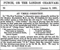 - Lemon, Mark (8 August 1891). "An 'umble corrections". Punch. 101: 70. Retrieved 25 November 2008.