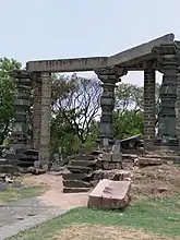 Subsequent modifications to the fort were made between the 15th and 17th centuries, mainly with the addition of Barbicans to the four gates in the stone wall and the creation of gates in the outer earthen wall.[12] Remnants of the structure can be seen today near Warangal. The Archaeological Survey of India has listed the ruins as a Monument of National Importance.[13]