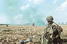 Another possible example is the Second Congo War (1998–2003) even though it was only waged on one continent. It involved nine nations and led to ongoing low-intensity warfare despite an official peace and the first democratic elections in 2006. It has frequently been referred to as "Africa's World War".[36]