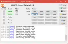 XAMPP (/ˈzæmp/ or /ˈɛks.æmp/)[2] is a free and open-source cross-platform web server solution stack package developed by Apache Friends,[2] consisting mainly of the Apache HTTP Server, MariaDB database, and interpreters for scripts written in the PHP and Perl programming languages.[3][4] Since most actual web server deployments use the same components as XAMPP, it makes transitioning from a local test server to a live server possible.