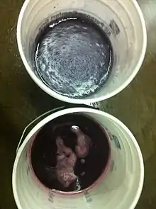 While some winemakers will inoculate their LAB with nutrients that include nitrogen, most of the nutrients needed for MLF come from the breakdown (or autolysis) of the dead yeast cells. Additionally, most bacteria used in MLF have the ability to produce extracellular protease enzymes that can also breakdown larger peptide chains into their base amino acid residues that can then be used for metabolism.[4]