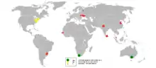 Zirconium has a concentration of about 130 mg/kg within the Earth's crust and about 0.026 μg/L in sea water.[13] It is not found in nature as a native metal, reflecting its intrinsic instability with respect to water. The principal commercial source of zirconium is zircon (ZrSiO4), a silicate mineral,[7] which is found primarily in Australia, Brazil, India, Russia, South Africa and the United States, as well as in smaller deposits around the world.[14] As of 2013, two-thirds of zircon mining occurs in Australia and South Africa.[15] Zircon resources exceed 60 million tonnes worldwide[16] and annual worldwide zirconium production is approximately 900,000 tonnes.[13] Zirconium also occurs in more than 140 other minerals, including the commercially useful ores baddeleyite and eudialyte.[17]